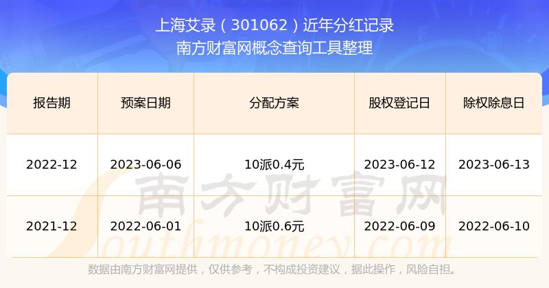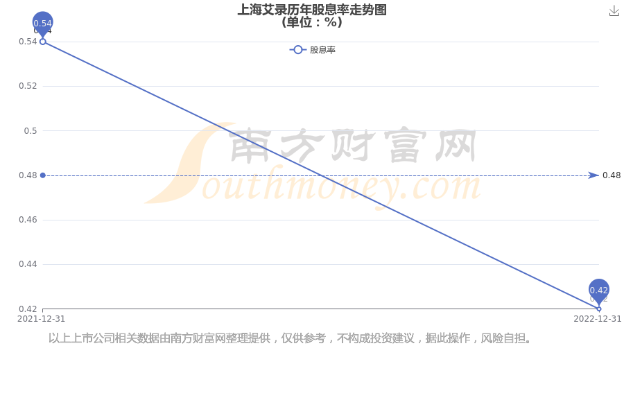 上海艾錄最新一次公布的分紅方案:10派0.4元。