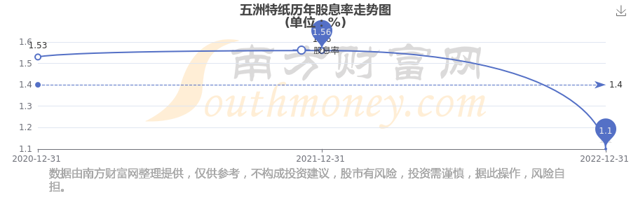 五洲特紙歷年股息率走勢(shì)如下圖:
