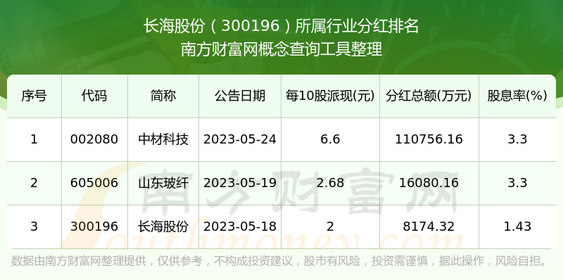 二、長海股份300196行業(yè)分紅排名