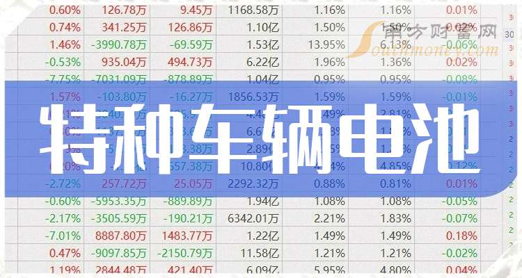 據南方財富網概念查詢工具數據顯示,特種車輛電池上市公司有: