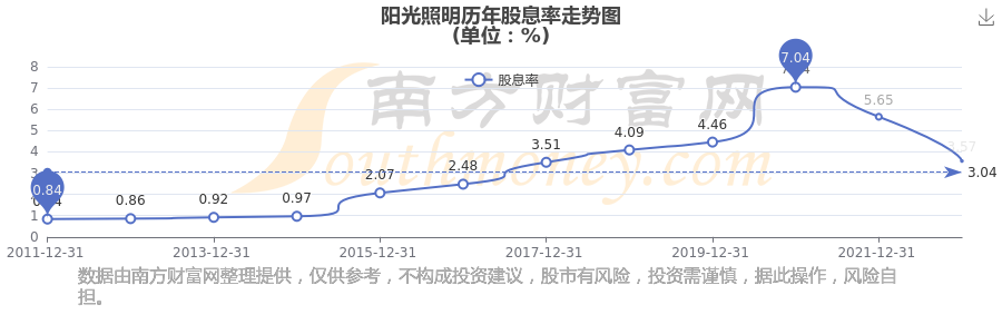 陽(yáng)光照明歷年股息率走勢(shì)如下圖: