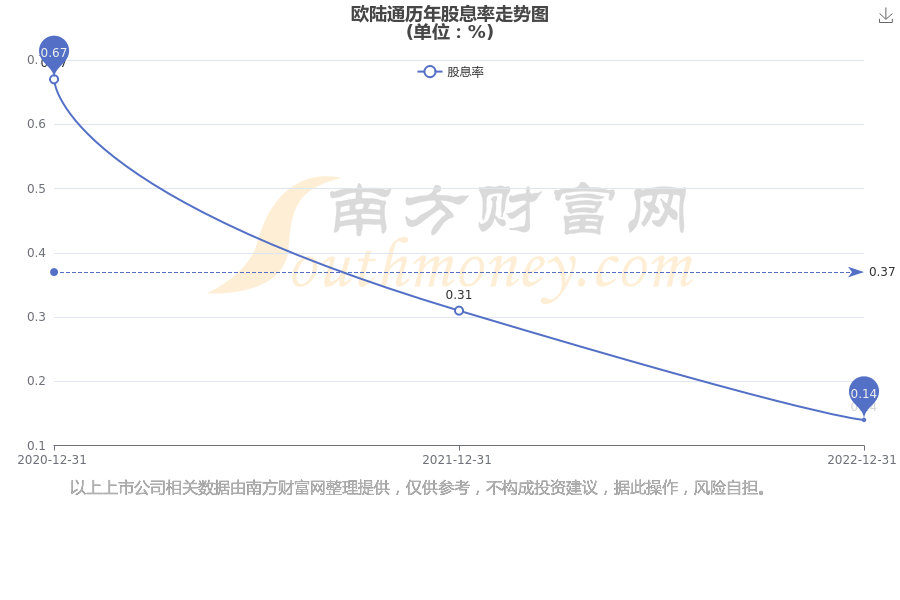 近年歐陸通年度股息率走勢(shì)如下圖: