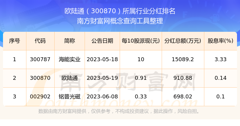 二、歐陸通300870行業(yè)分紅排名