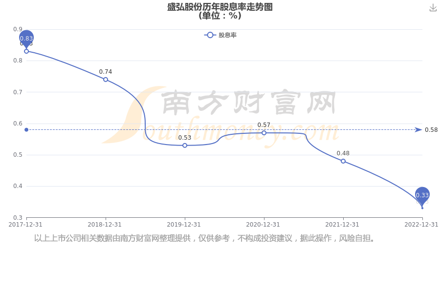 近年盛弘股份年度股息率走勢(shì)如下圖: