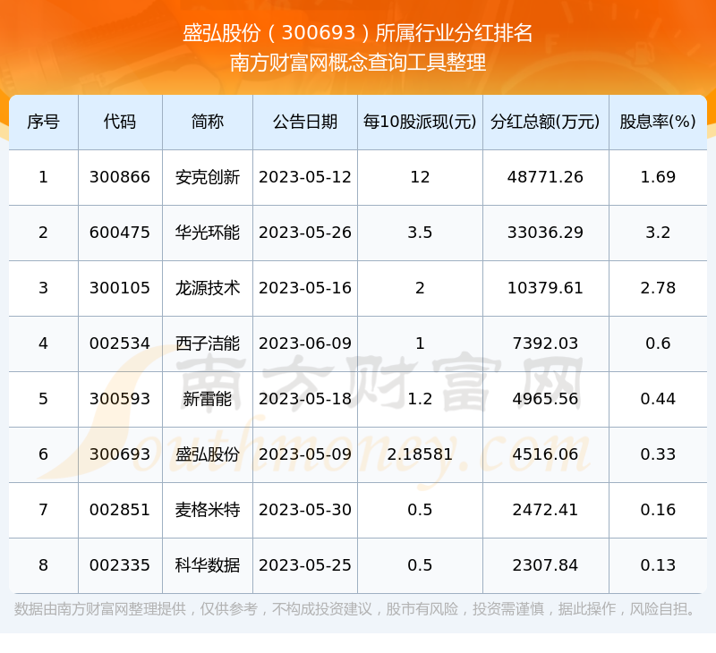 按照南方財(cái)富網(wǎng)趨勢(shì)選股系統(tǒng)統(tǒng)計(jì),盛弘股份所屬行業(yè)為電源設(shè)備行業(yè),電源設(shè)備行業(yè)分紅排名情況如下表: