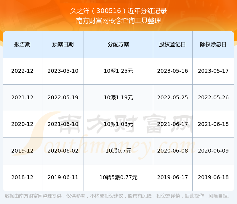 久之洋最新一次公布的分紅方案:10派1.25元。