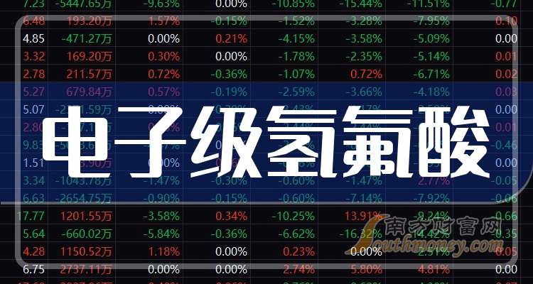 電子級(jí)氫氟酸題材上市公司有哪些?據(jù)南方財(cái)富網(wǎng)概念查詢(xún)工具數(shù)據(jù)顯示,電子級(jí)氫氟酸題材上市公司有: