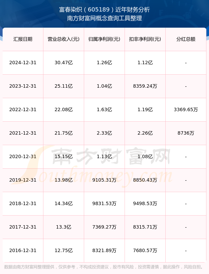 2024年報(bào)顯示,富春染織實(shí)現(xiàn)營(yíng)收30.47億,同比增長(zhǎng)21.38%;凈利潤(rùn)1.26億,同比增長(zhǎng)20.76%;毛利率12.26%。