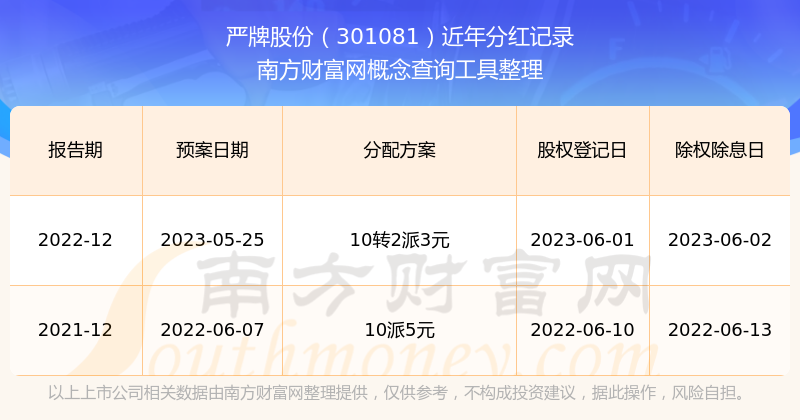 一、嚴(yán)牌股份(301081)股票分紅記錄