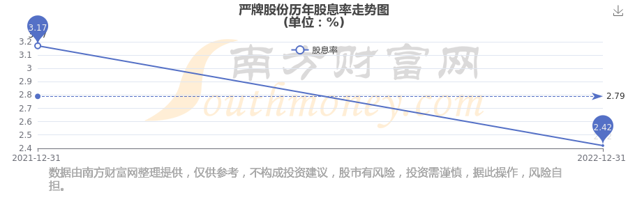 近年嚴(yán)牌股份年度股息率走勢如下圖: