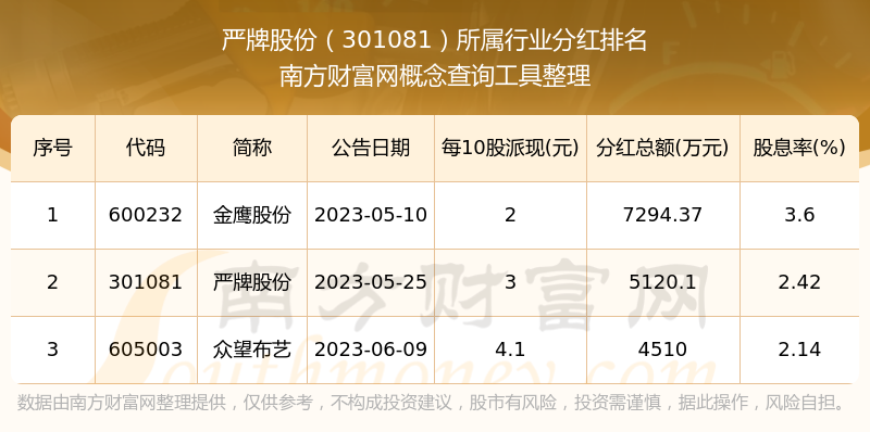 二、嚴(yán)牌股份301081行業(yè)分紅排名