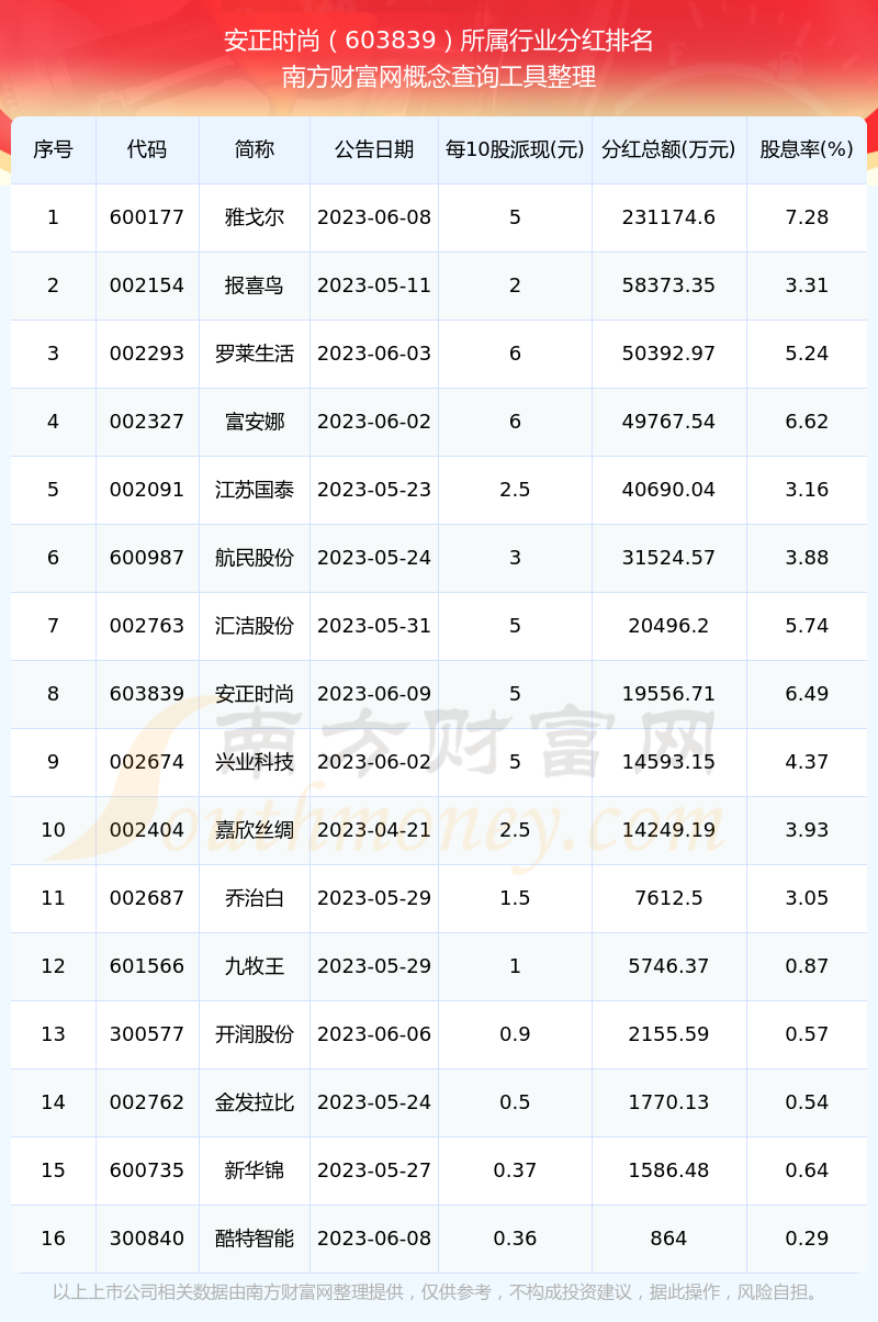 二、安正時(shí)尚603839行業(yè)分紅排名