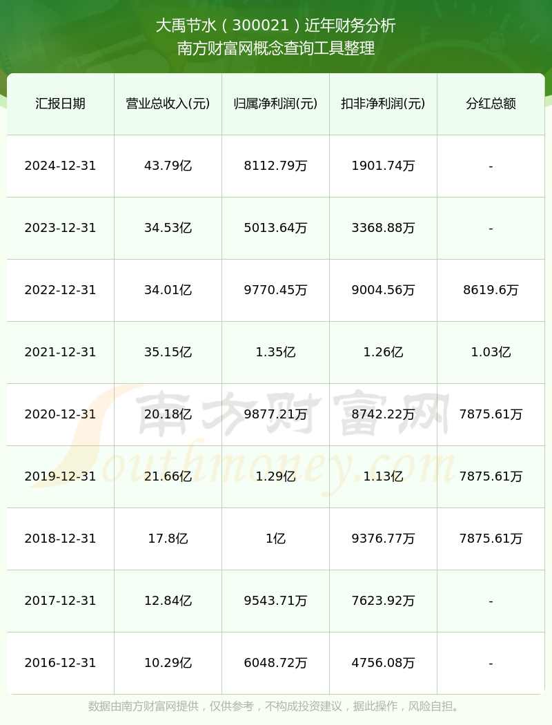 近年大禹節(jié)水分紅派息情況如下表所示: