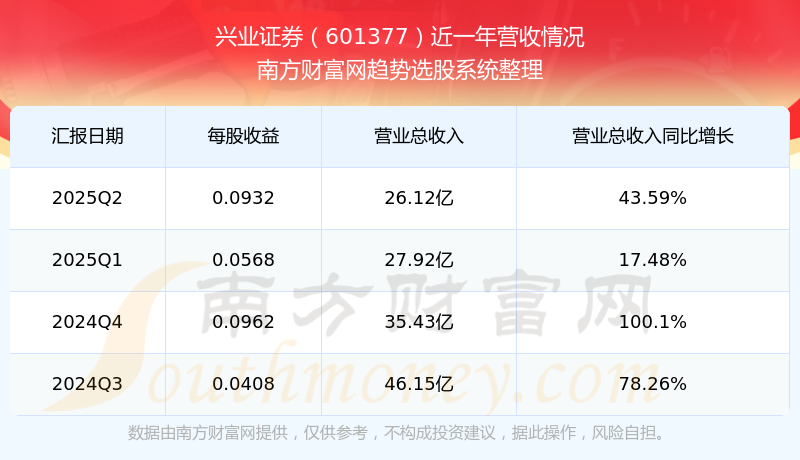 A股上市公司興業(yè)證券(代碼:601377)發(fā)布2025年第二季度財(cái)報(bào),公司2025年第二季度歸屬于上市公司股東的凈利潤為8.14億元,凈利潤同比增長32.64%,環(huán)比增長57.62%。