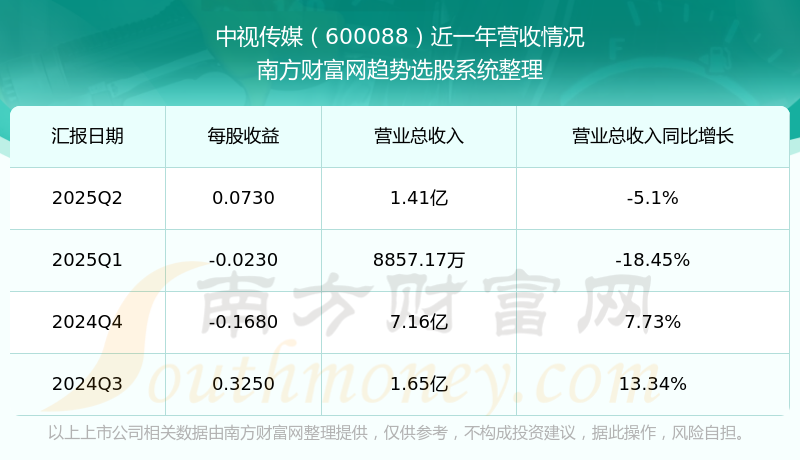 2025年第二季度,中視傳媒營收同比-5.1%,凈利潤同比200.75%。