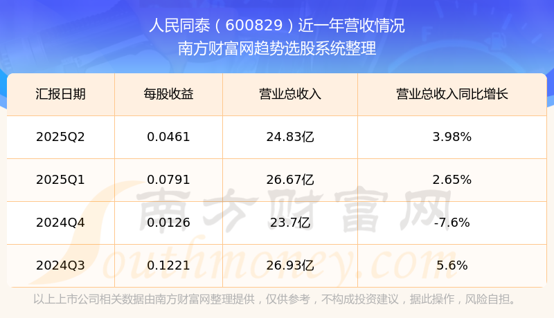 人民同泰2025年第二季度公司實(shí)現(xiàn)營(yíng)業(yè)收入24.83億元,同比3.98%;歸母凈利潤(rùn)2673.83萬(wàn)元,同比-52.97%。