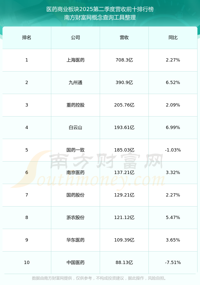 按照南方財(cái)富網(wǎng)概念查詢(xún)工具統(tǒng)計(jì),該股所屬板塊為醫(yī)藥商業(yè)板塊,該板塊共有61只股票,人民同泰2025第二季度營(yíng)收在該板塊中排名為第26名,該板塊2025第二季度營(yíng)收排名前十的股票如下表: