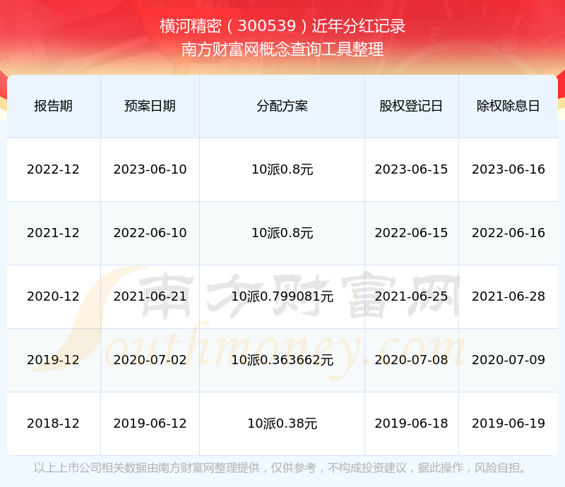 一、橫河精密(300539)股票分紅記錄
