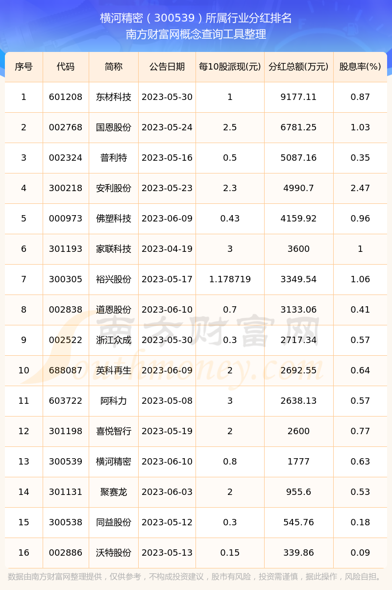 二、橫河精密300539行業(yè)分紅排名