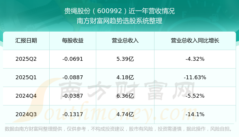 貴繩股份2025年第二季度顯示,公司主營收入5.39億元,同比-4.32%;歸母凈利潤-1694.9萬元,同比-959.13%;扣非凈利潤-1950.28萬元,同比-1700.63%;