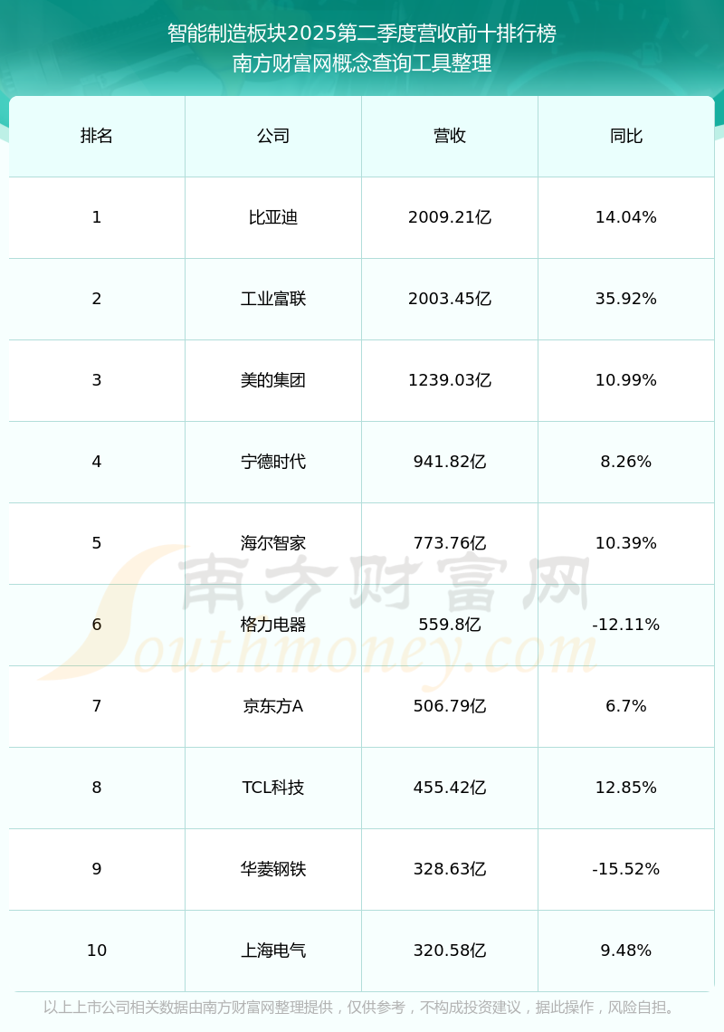 按照南方財富網(wǎng)概念查詢工具統(tǒng)計,該股所屬板塊為智能制造板塊,該板塊共有369只股票,上海滬工2025第二季度營收在該板塊中排名為第261名,該板塊2025第二季度營收排名前十的股票如下表: