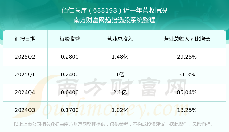 財(cái)報(bào)顯示,2025年第二季度佰仁醫(yī)療營收1.48億元,同比增長29.25%,凈利潤3889.63萬元,同比增長44.75%。