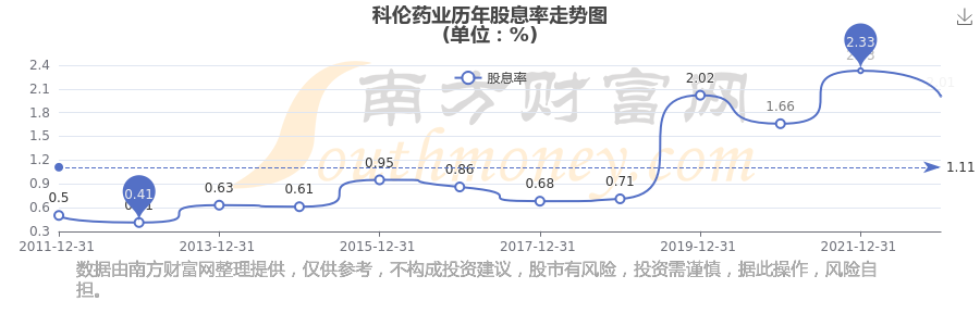 近年科倫藥業(yè)年度股息率走勢如下圖: