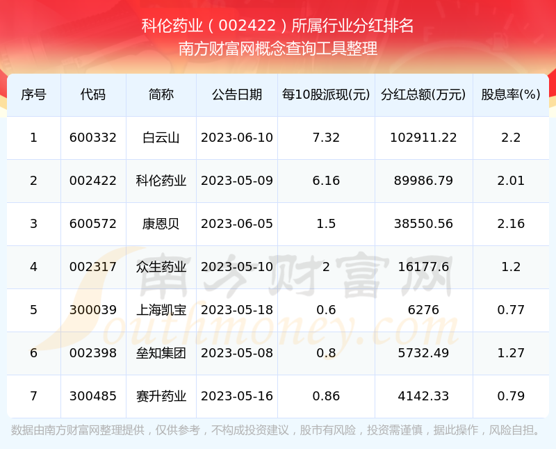 二、科倫藥業(yè)002422行業(yè)分紅排名