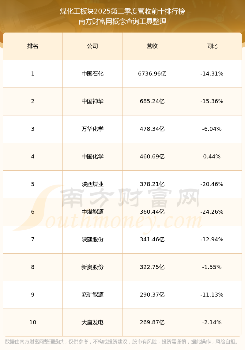 按照南方財(cái)富網(wǎng)概念查詢工具統(tǒng)計(jì),該股所屬板塊為煤化工板塊,該板塊共有115只股票,淮河能源2025第二季度營收在該板塊中排名為第33名,該板塊2025第二季度營收排名前十的股票如下表: