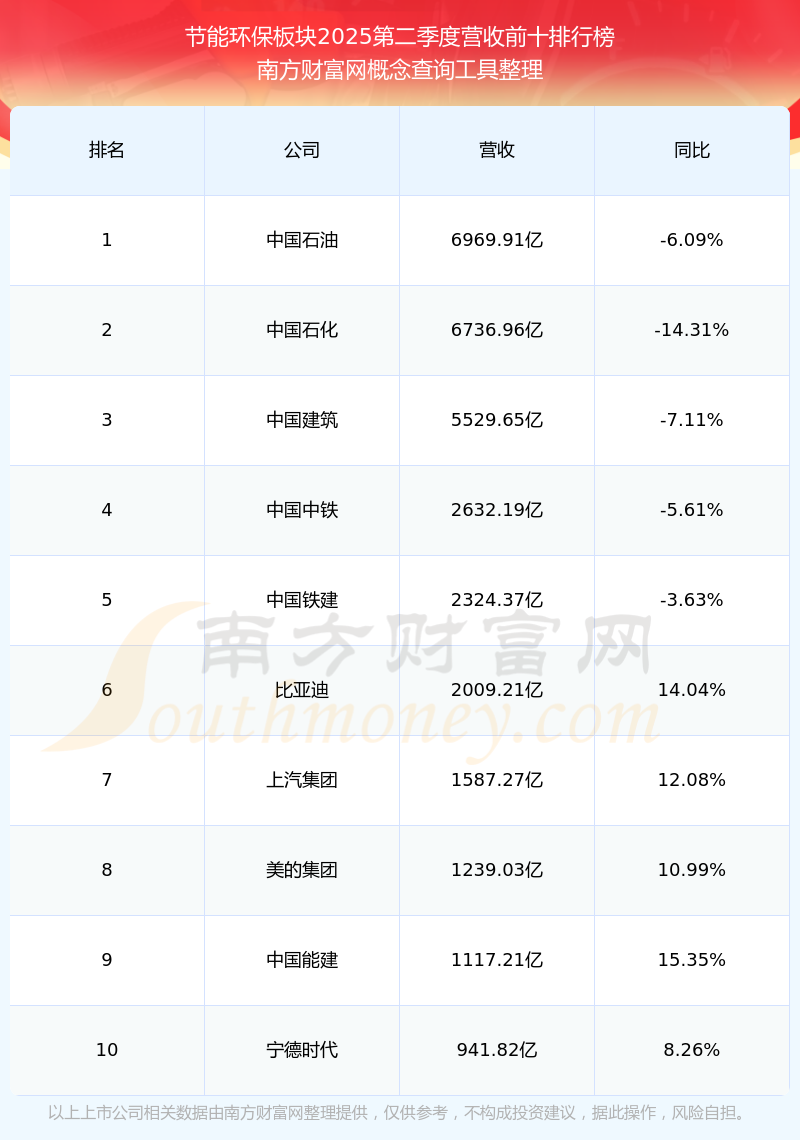 按照南方財(cái)富網(wǎng)概念查詢工具統(tǒng)計(jì),該股所屬板塊為節(jié)能環(huán)保板塊,該板塊共有626只股票,江南水務(wù)2025第二季度營(yíng)收在該板塊中排名為第410名,該板塊2025第二季度營(yíng)收排名前十的股票如下表: