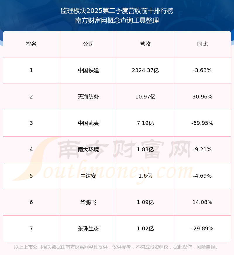 按照南方財(cái)富網(wǎng)概念查詢(xún)工具統(tǒng)計(jì),該股所屬板塊為監(jiān)理板塊,該板塊共有7只股票,華錫有色2025第二季度營(yíng)收在該板塊中排名為第7名,該板塊2025第二季度營(yíng)收排名前十的股票如下表: