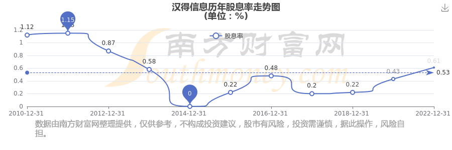 近年漢得信息年度股息率走勢(shì)如下圖: