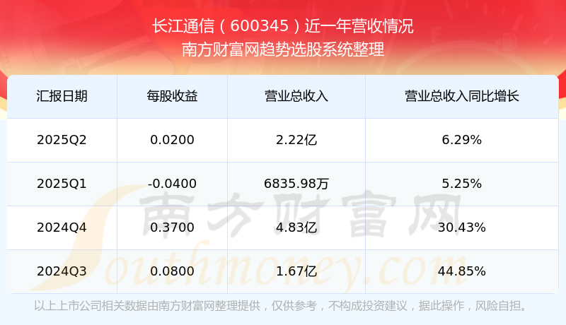 2025年第二季度,長(zhǎng)江通信營(yíng)收同比6.29%,凈利潤(rùn)同比-83.33%。