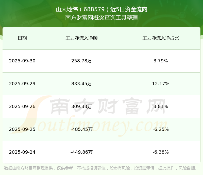 二、山大地緯(688579)近期盤面、資金面情況