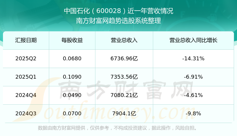 中國(guó)石化(600028)披露2025年第二季度報(bào)告,報(bào)告期實(shí)現(xiàn)營(yíng)收6736.96億元,同比-14.31%;歸母凈利潤(rùn)82.19億元,同比-52.73%;扣非凈利潤(rùn)79.92億元,同比-54.06%;基本每股收益0.07元。