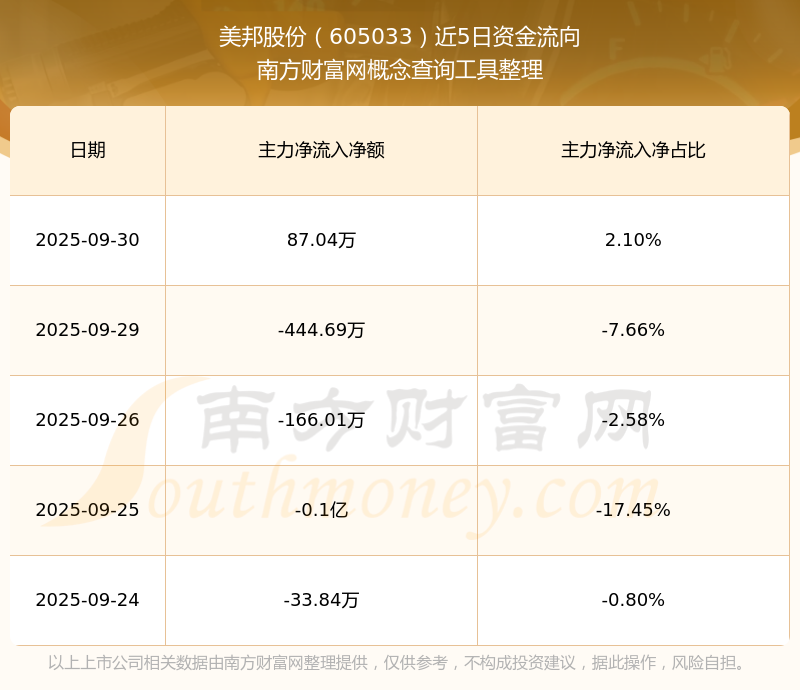 二、美邦股份(605033)近期盤面、資金面情況
