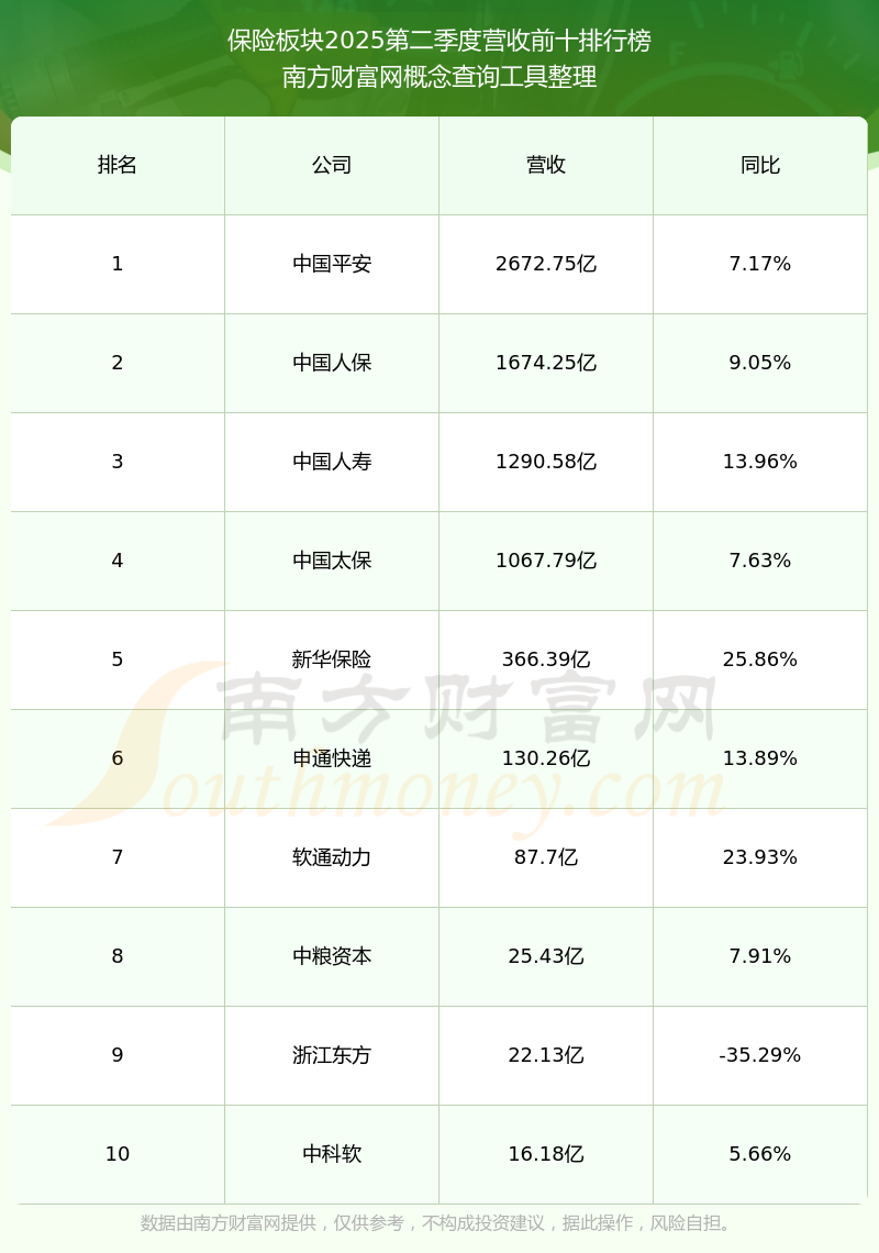 按照南方財富網(wǎng)概念查詢工具統(tǒng)計,該股所屬板塊為保險板塊,該板塊共有18只股票,中國人壽2025第二季度營收在該板塊中排名為第3名,該板塊2025第二季度營收排名前十的股票如下表: