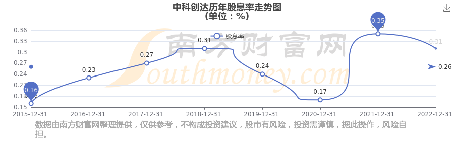 近年中科創(chuàng)達(dá)年度股息率走勢如下圖: