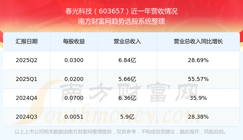 一、春光科技(603657)股票營收情況
