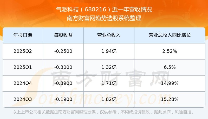 氣派科技2025年第二季度報告顯示,公司實現(xiàn)主營業(yè)務(wù)收入1.94億元,較去年同期增長2.52%;歸屬于母公司股東的凈利潤為-2649.63萬元,同比增長-35.95%;扣除非經(jīng)常性損益后的凈利潤為-2974.99萬元,同比增長-31.75%。