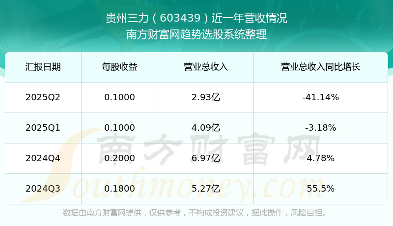 貴州三力發(fā)布2025年第二季度財(cái)報(bào)。實(shí)現(xiàn)總營(yíng)收2.93億元,同比增長(zhǎng)-41.14%;扣非凈利潤(rùn)同比增長(zhǎng)-42.48%至3239.99萬(wàn)元。