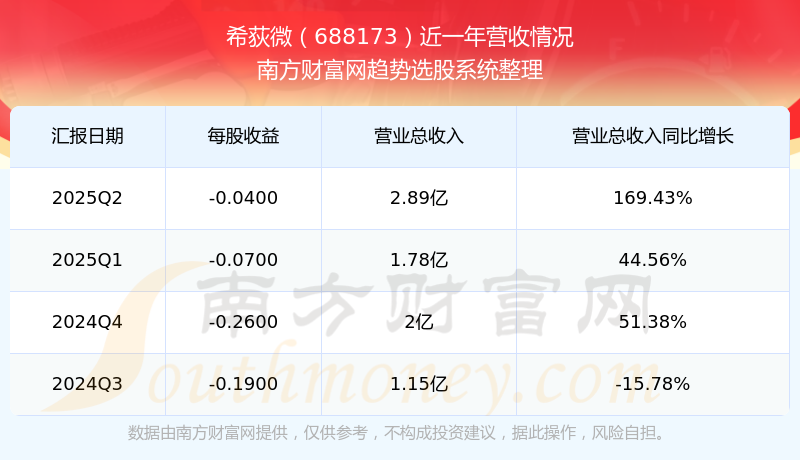 在2025年第二季度,希荻微的業(yè)績表現(xiàn),主營業(yè)務(wù)收入達到2.89億元,實現(xiàn)了169.43%的同比增長率。同時,公司歸母凈利潤錄得-1742.36萬元,同比增長74.62%。