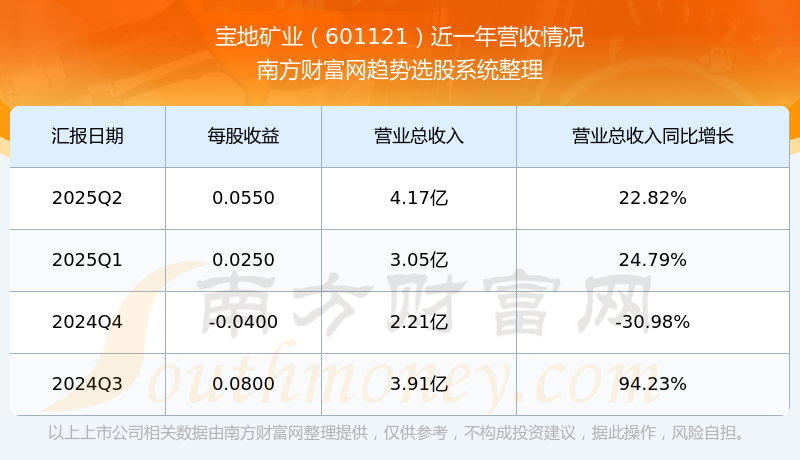 寶地礦業(yè)發(fā)布2025年第二季度財報。實現(xiàn)總營收4.17億元,同比增長22.82%;扣非凈利潤同比增長-35.62%至3594.51萬元。