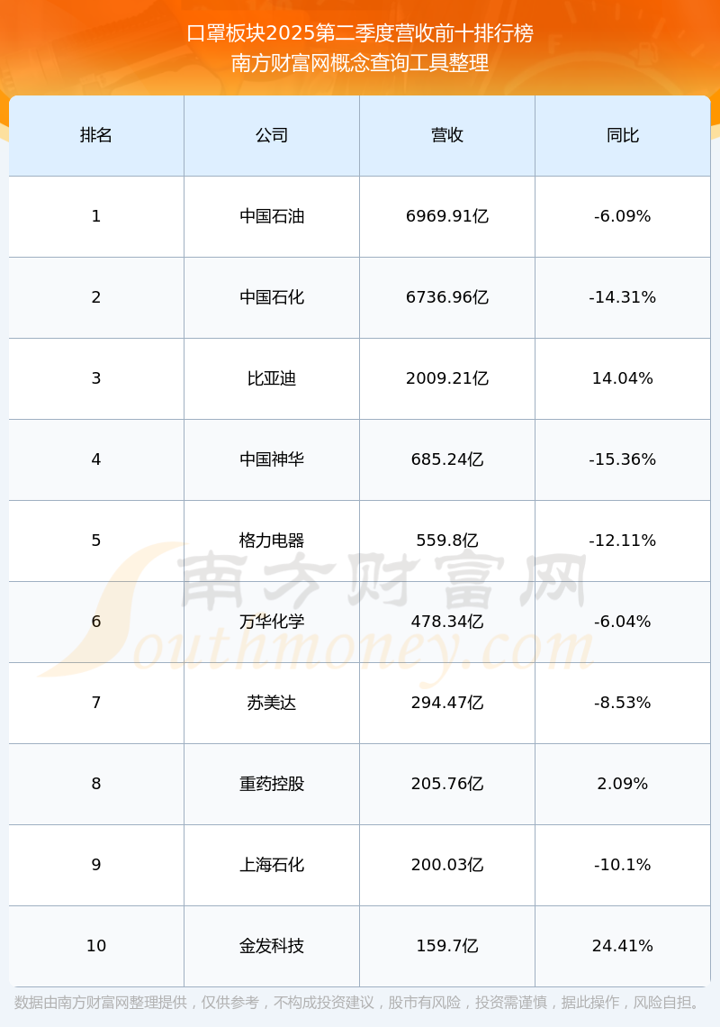 按照南方財(cái)富網(wǎng)概念查詢工具統(tǒng)計(jì),該股所屬板塊為口罩板塊,該板塊共有212只股票,太平鳥2025第二季度營收在該板塊中排名為第66名,該板塊2025第二季度營收排名前十的股票如下表: