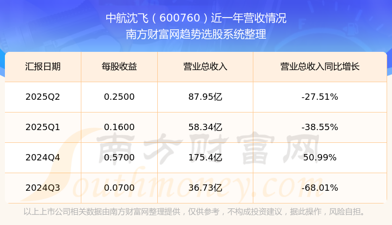 按照南方財富網(wǎng)概念查詢工具統(tǒng)計,該股所屬板塊為航天航空板塊,該板塊共有119只股票,中航沈飛2025第二季度營收在該板塊中排名為第2名,該板塊2025第二季度營收排名前十的股票如下表: