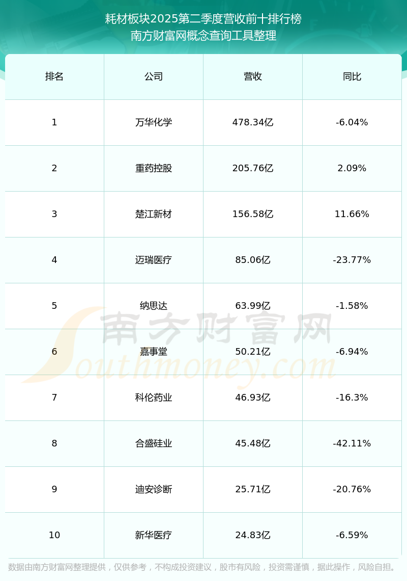 按照南方財富網(wǎng)概念查詢工具統(tǒng)計,該股所屬板塊為耗材板塊,該板塊共有65只股票,西山科技2025第二季度營收在該板塊中排名為第65名,該板塊2025第二季度營收排名前十的股票如下表: