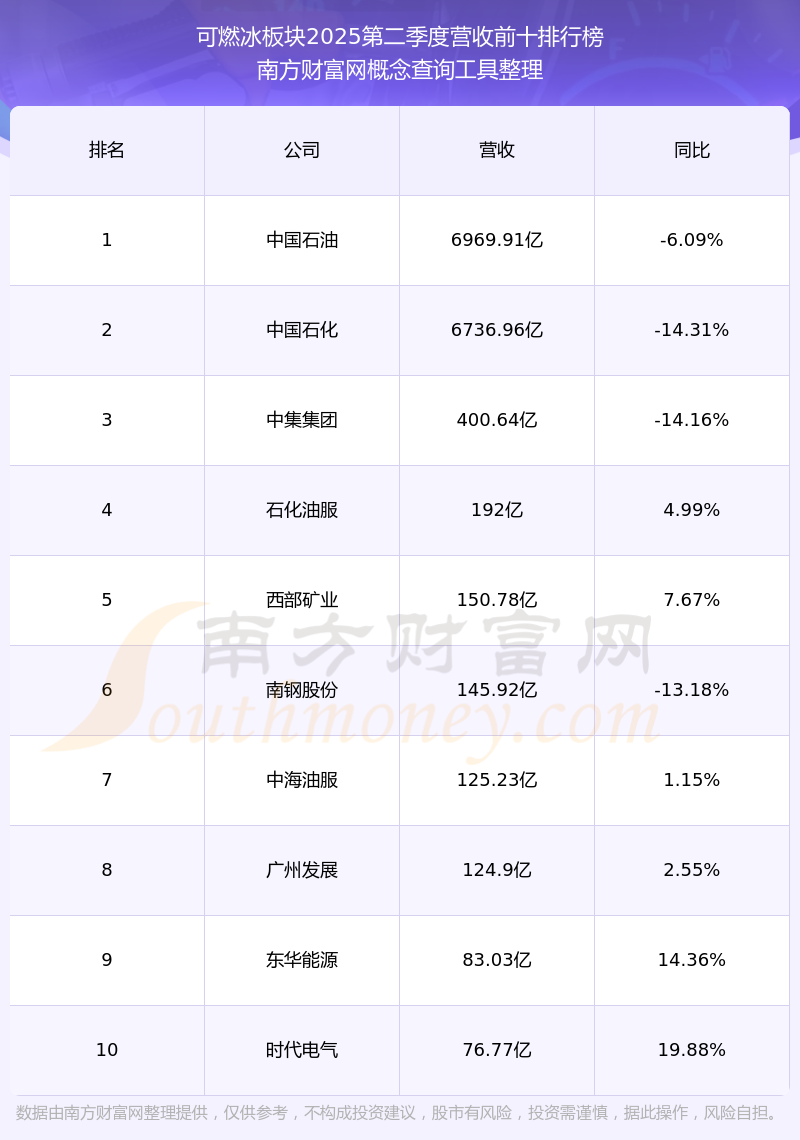按照南方財富網概念查詢工具統(tǒng)計,該股所屬板塊為可燃冰板塊,該板塊共有33只股票,博邁科2025第二季度營收在該板塊中排名為第23名,該板塊2025第二季度營收排名前十的股票如下表: