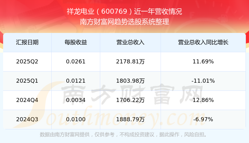 在2025年第二季度,祥龍電業(yè)的業(yè)績(jī)表現(xiàn),主營(yíng)業(yè)務(wù)收入達(dá)到2178.81萬(wàn)元,實(shí)現(xiàn)了11.69%的同比增長(zhǎng)率。同時(shí),公司歸母凈利潤(rùn)錄得977.63萬(wàn)元,同比增長(zhǎng)156.63%。