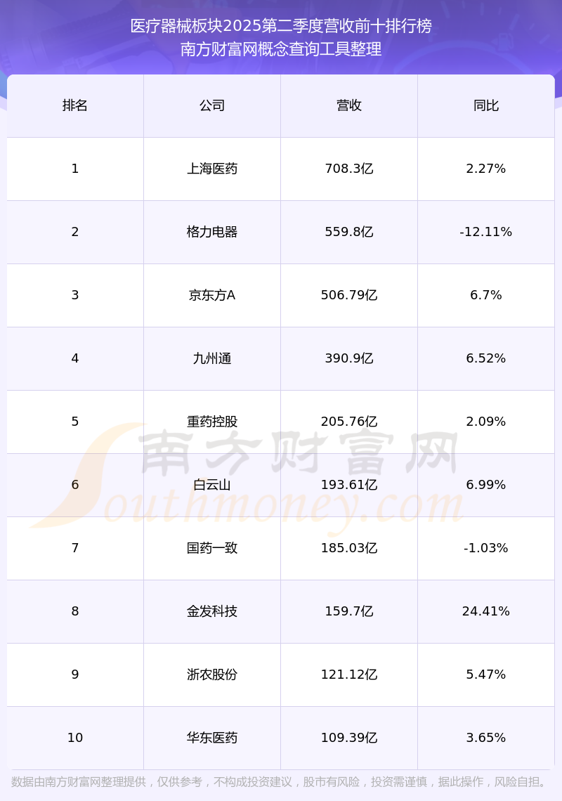 按照南方財富網(wǎng)概念查詢工具統(tǒng)計,該股所屬板塊為醫(yī)療器械板塊,該板塊共有413只股票,惠泰醫(yī)療2025第二季度營收在該板塊中排名為第135名,該板塊2025第二季度營收排名前十的股票如下表: