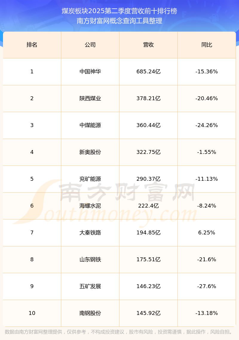 按照南方財(cái)富網(wǎng)概念查詢(xún)工具統(tǒng)計(jì),該股所屬板塊為煤炭板塊,該板塊共有71只股票,安源煤業(yè)2025第二季度營(yíng)收在該板塊中排名為第54名,該板塊2025第二季度營(yíng)收排名前十的股票如下表: